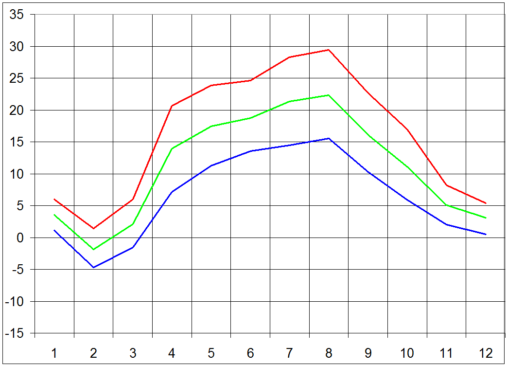 Amplituda 10 °C a vice: 182 dni