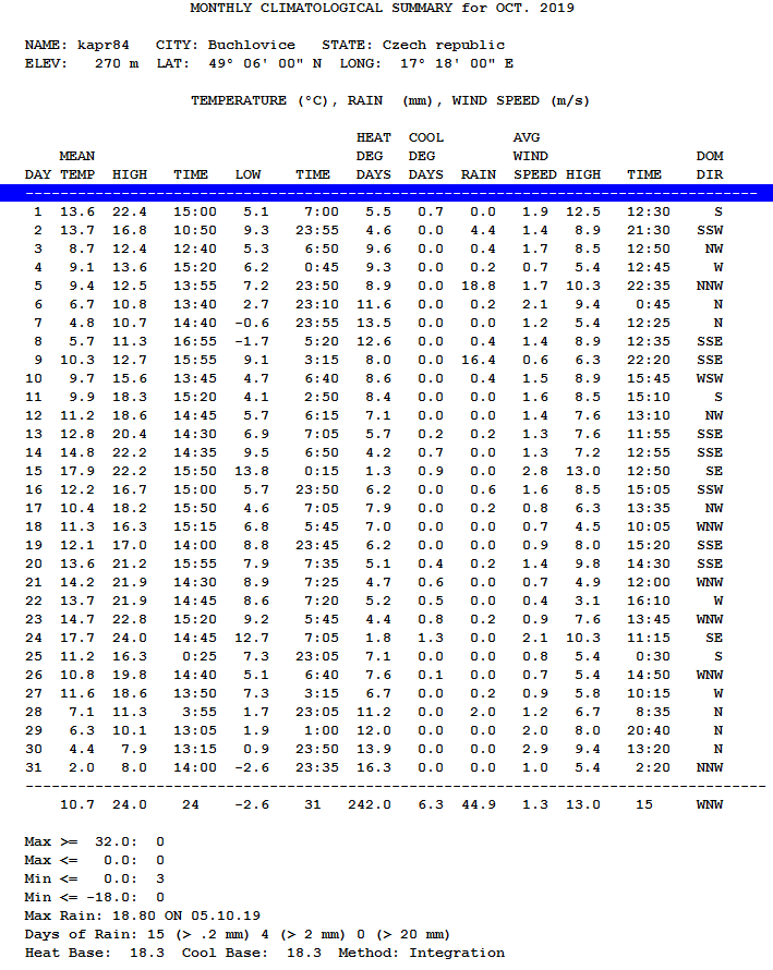 Nejteplejší den »»»»»»»»»»»»»»»»»»»»» 15.10 »»»»»»» 18,4°C
