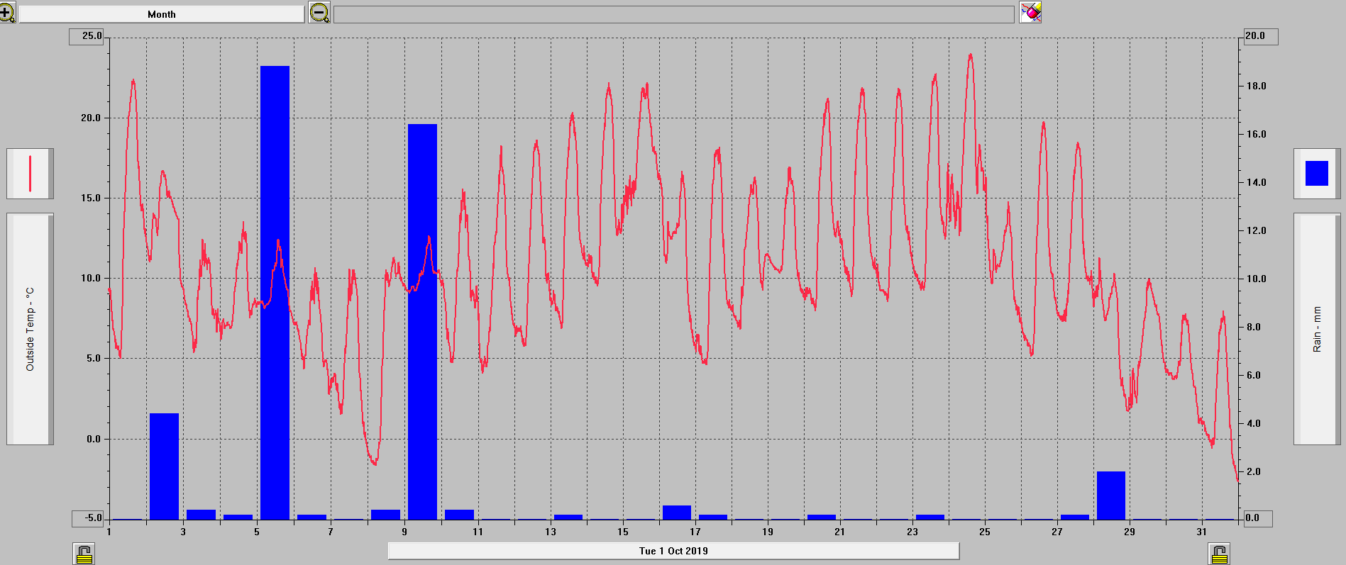 Začátkem října byla maximální teplota normální. Od třetího se prudce ochladilo, chladno bylo do desátého.