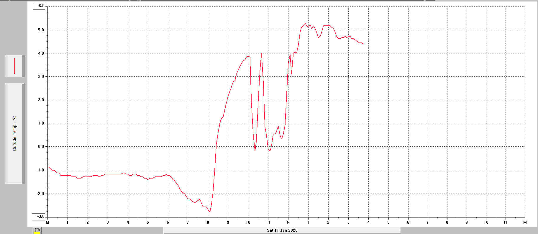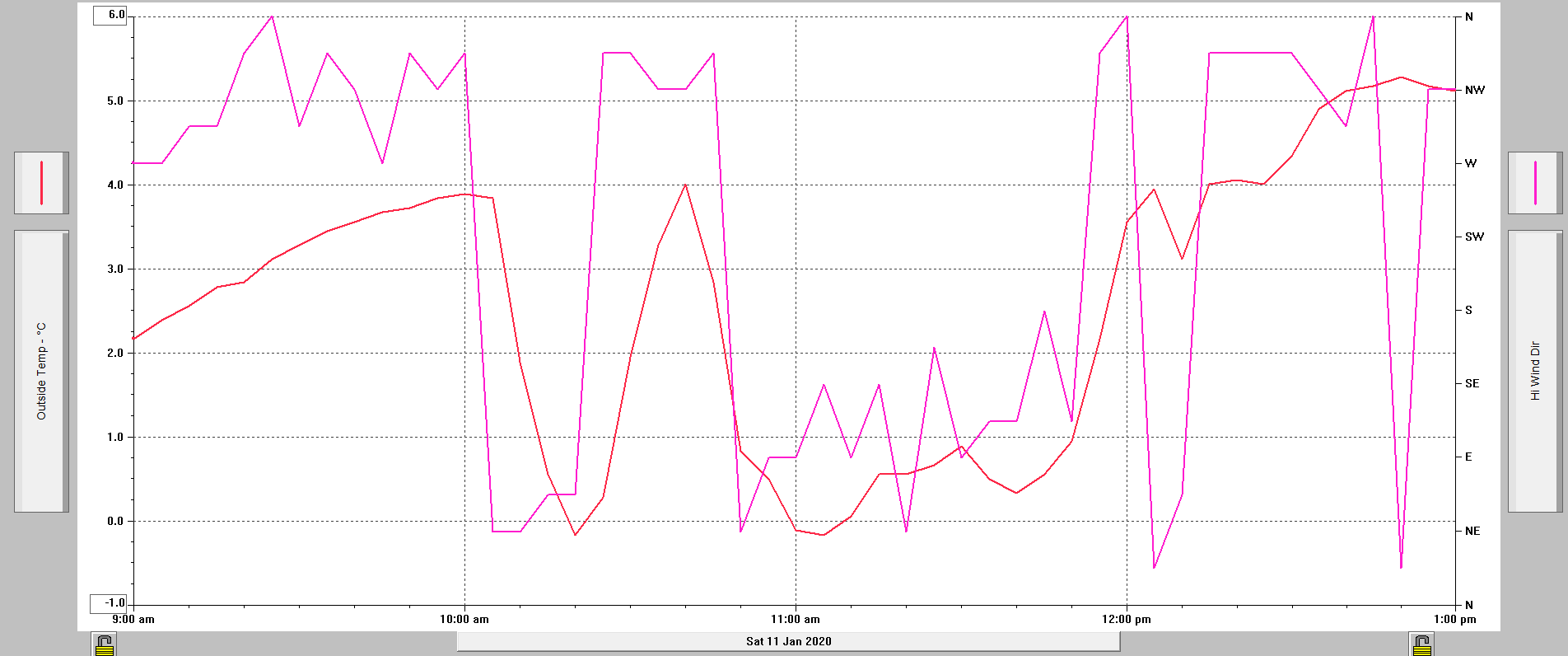 Zdravím všechny, dnes jsem poprvé se stanicí zažil neobvyklé měření teploty vzduchu.. viz příloha. Skoky to byly opravdu obrovské, je sice pravda, že chvilku bylo čidlo na slunci, pak ve stínu, později se převalily i chuchvalce mlhy.. ale podle mě čidlo reagovalo příliš výrazně, ještě jsem to nezažil. Řešili jste někdo něco podobného už? Během dne už se teplota ustálila.. ale nevím no, ventilátorek sice jel, ale takové změny jsou podle mě moc.. Jinak reagovala i směrovka anemometru na tyto změny.. takže v čidle teploty/vlhkosti to asi nebude, zatím... nacházeli jsme se zrovna na rozhraní teplého vzduchu na západě a chladného na východě.. pokud se to opravdu stalo, tak je to hodně zajímavá situace..