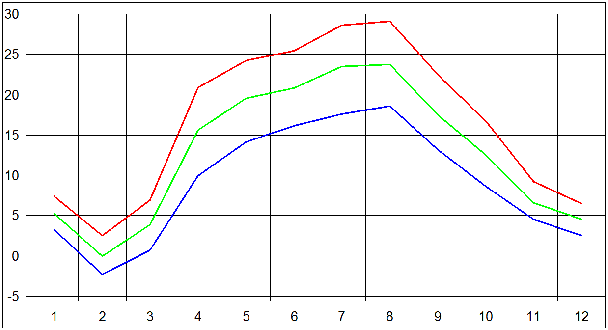 Tmax +25 °C a vice - Letni dny: 278 dni