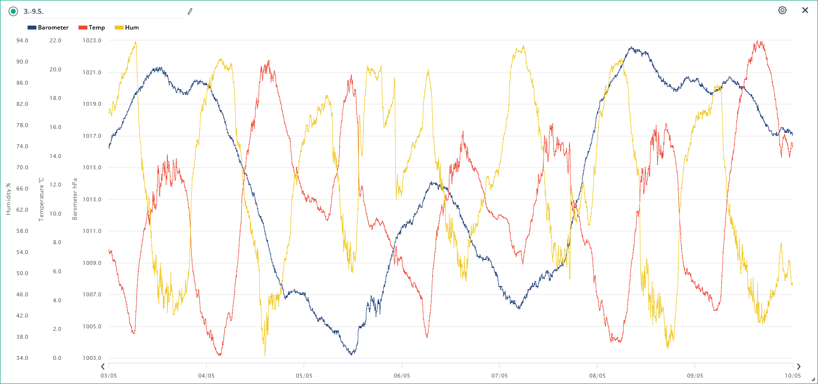 Minimální/maximální tlak 5.5.: 1001,8 hPa / 1009,1 hPa