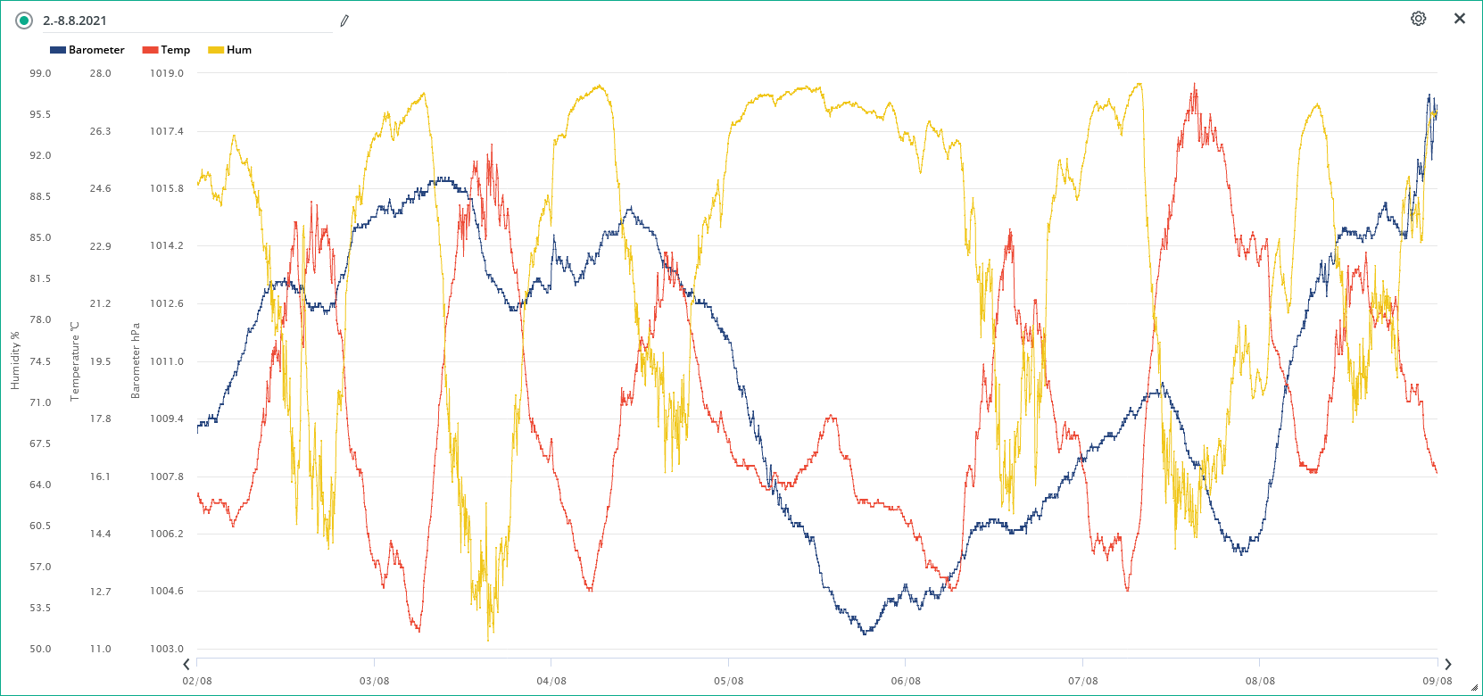 Minimální/maximální tlak 8.8.: 1005,5 hPa / 1018,4 hPa