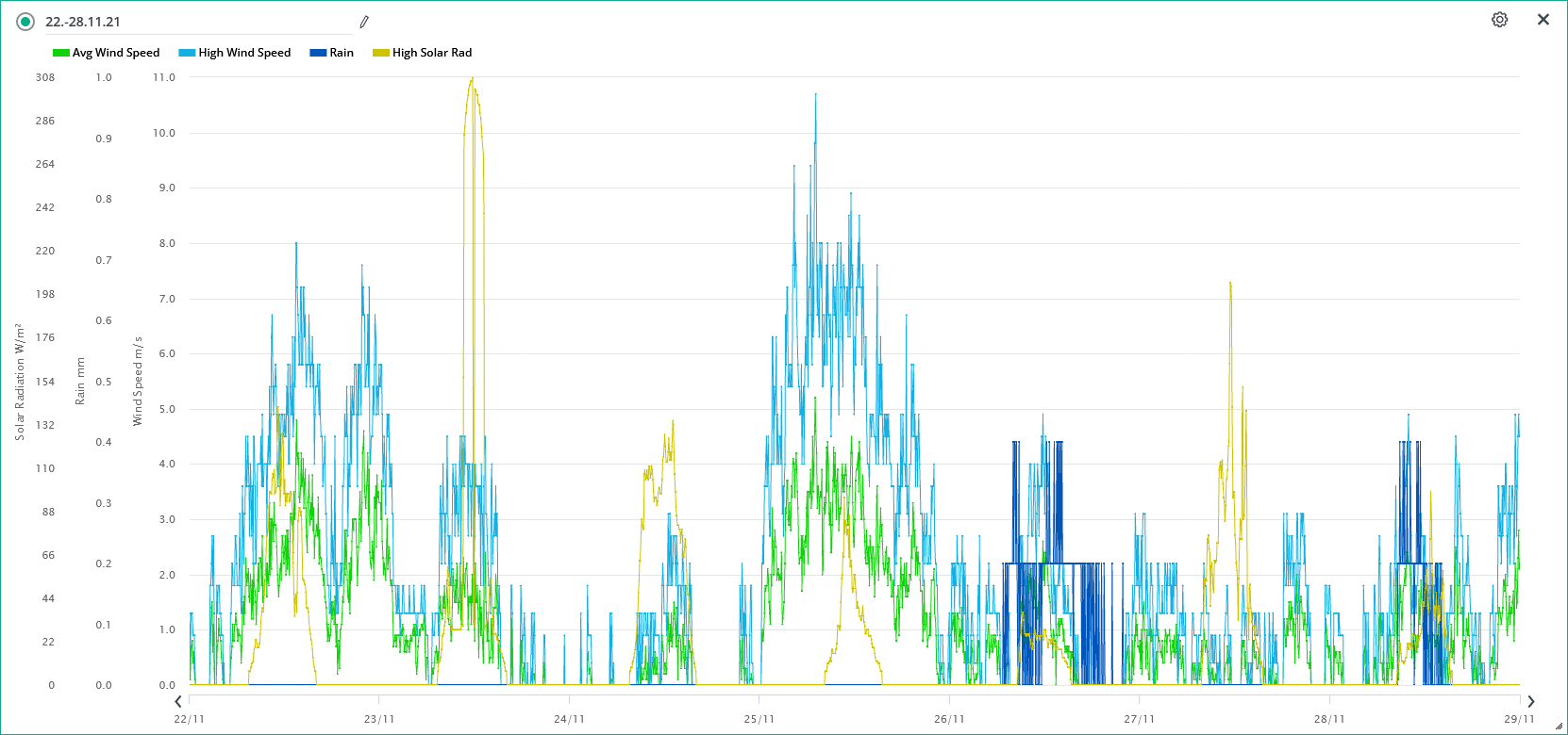 Průměrná rychlost větru 28.11./ max. rychlost.: 1,2 m/s (JZ)/ 7,2 m/s (SZ) 22:55 SEČ