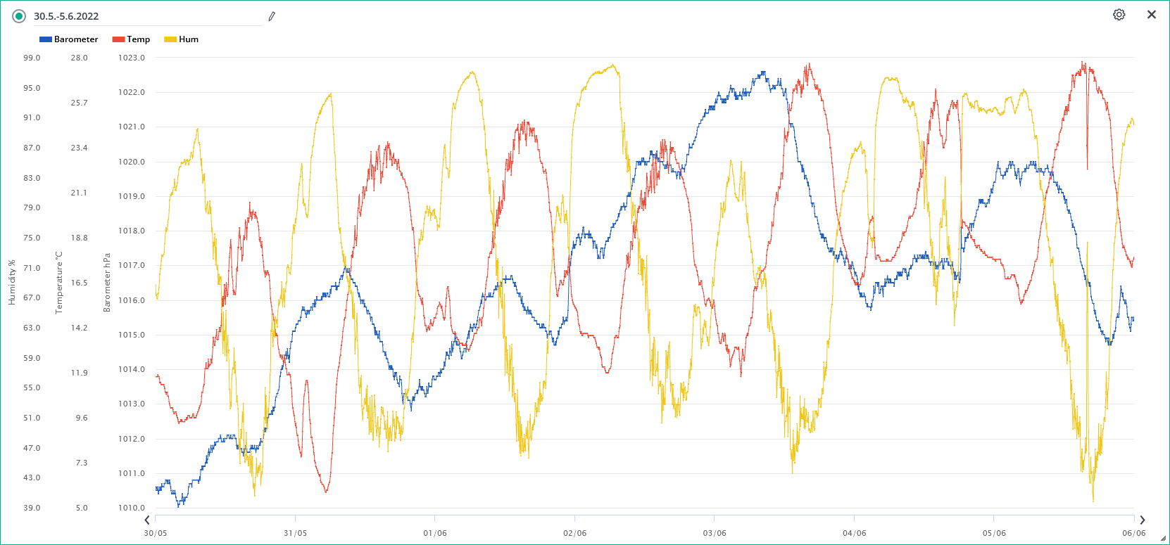 Minimální/maximální tlak 31.5.: 1012,2 hPa / 1016,5 hPa