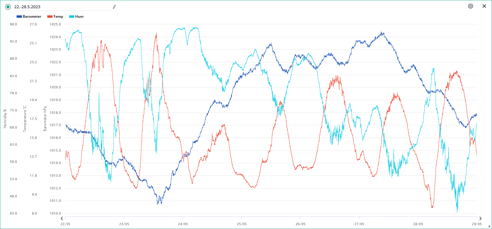 Minimální/maximální tlak 29.5.: 1016,6 hPa /1018,5 hPa