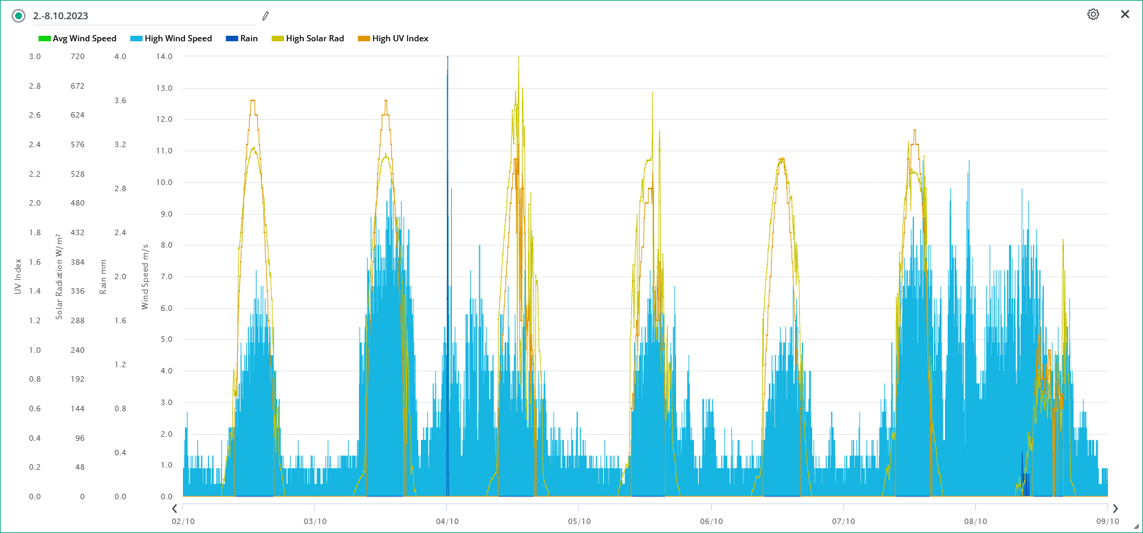 Průměrná rychlost větru 10.10./ max. rychlost.: 0,7 m/s (ZSZ)/ 5,4 m/s (Z) 15:50