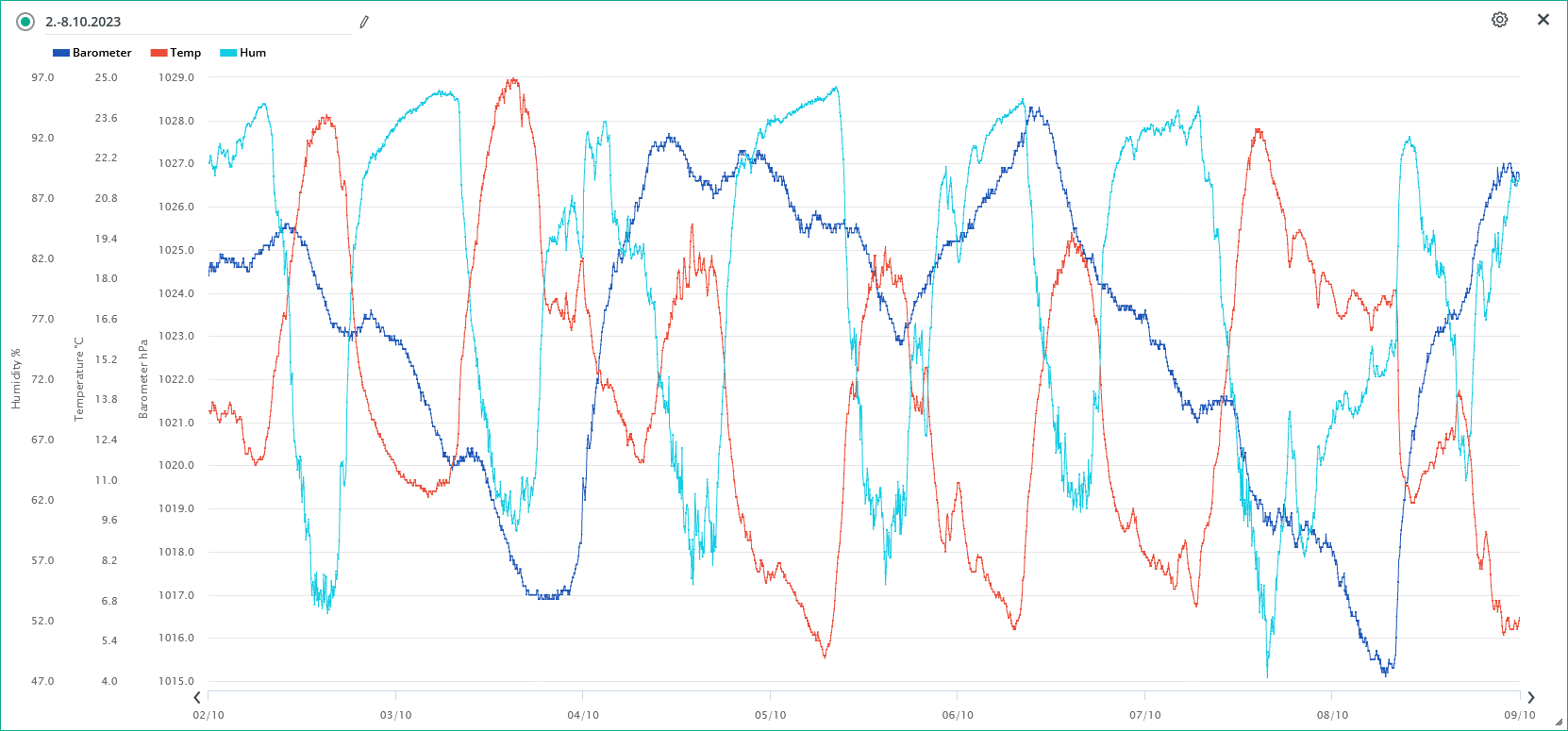 Minimální/maximální tlak 7.10.: 1016,2 hPa /1022,4 hPa