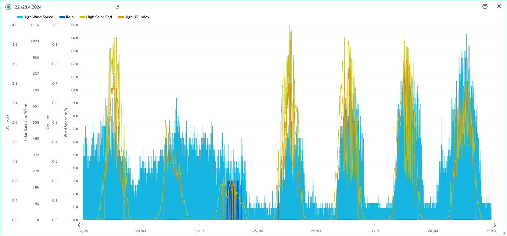 Nejvyšší hodnota solární radiace dnes: 796 W/m2 (13:15)