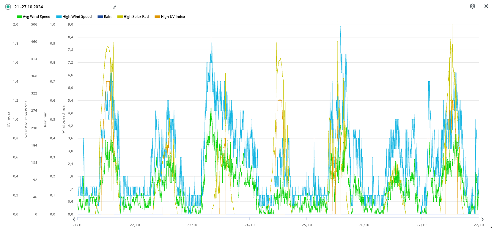 Vítr, srážky, solární radiace, UVI 21.-27.10.2024