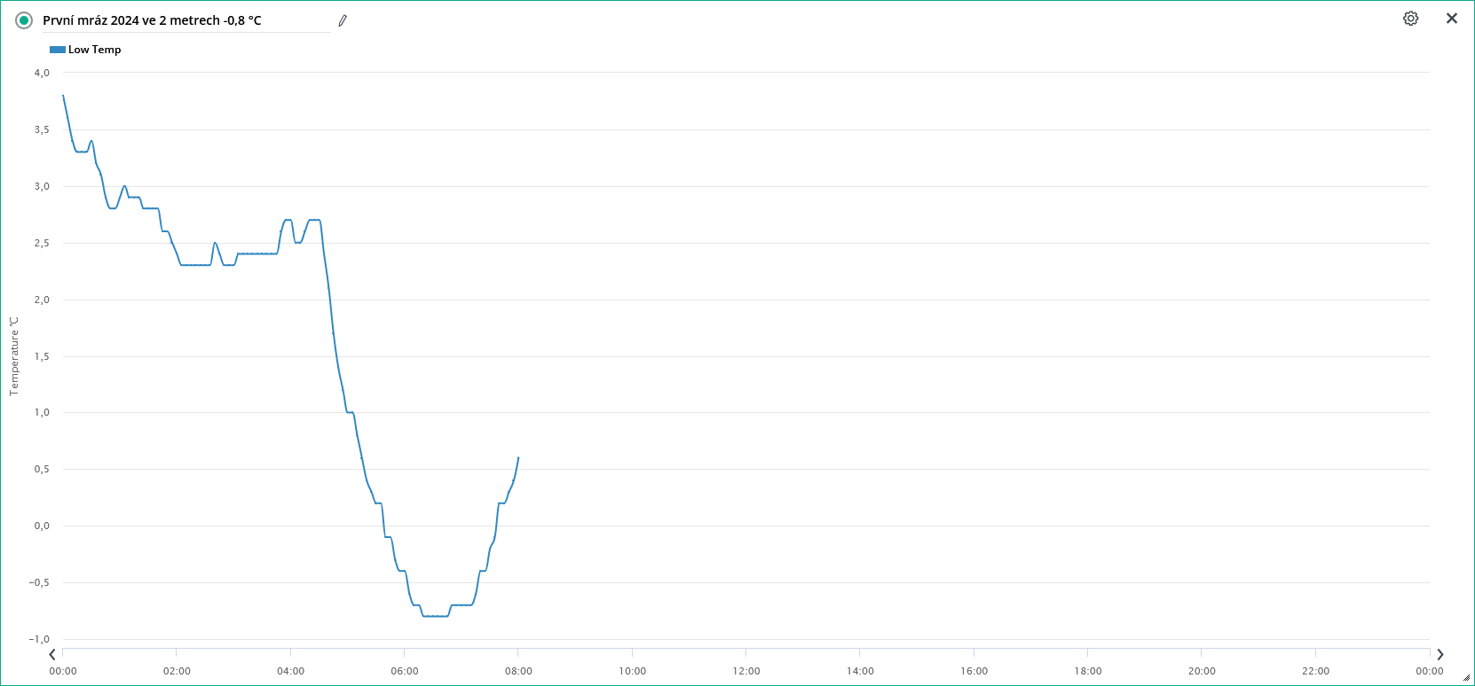 Minimální přízemní teplota za 24h: -0,6 °C (1.; 06:10)