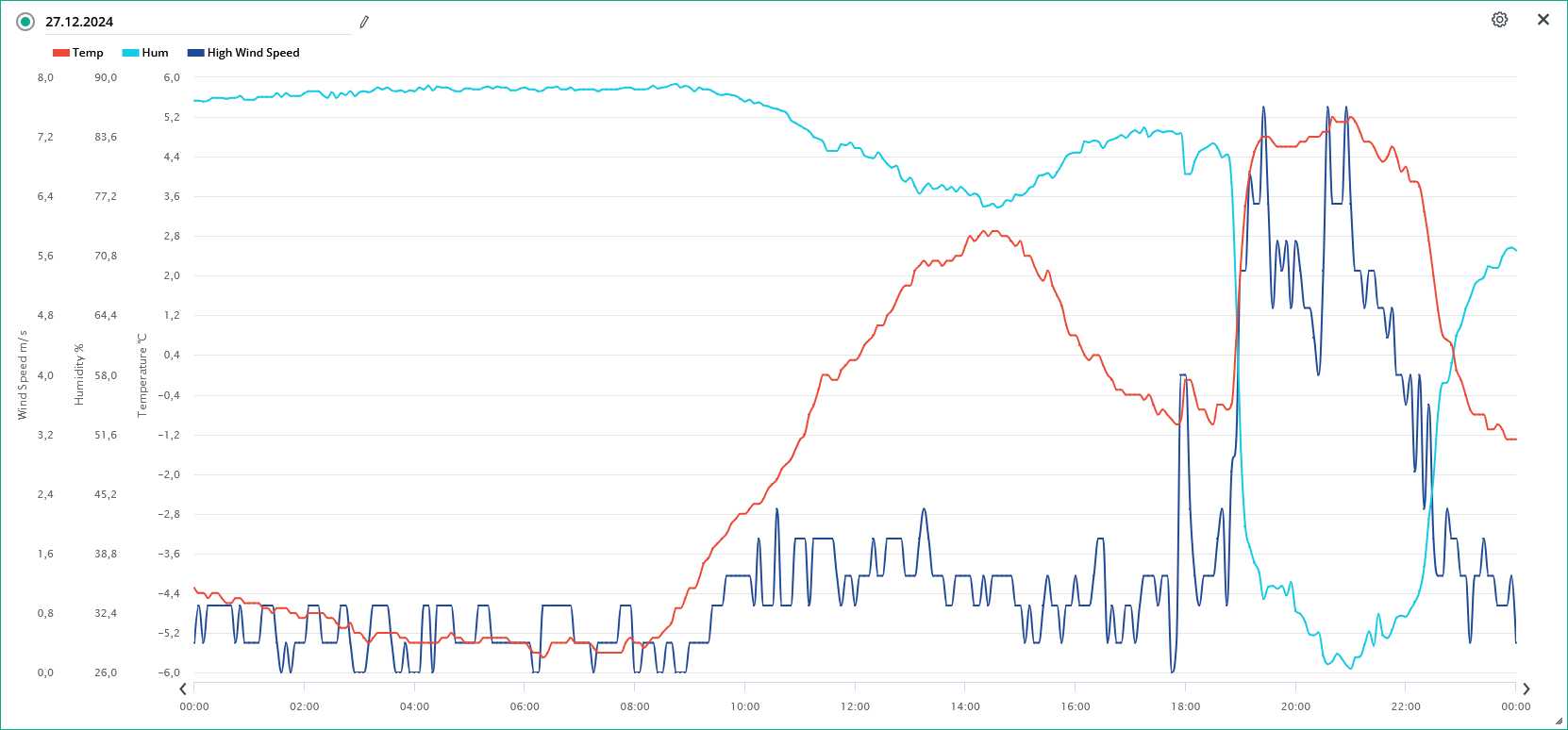 - nejsilnější náraz větru zaznamenán: 7,6 m/s z azimutu 355°(S) dne 9.12. v 10:15 SEČ