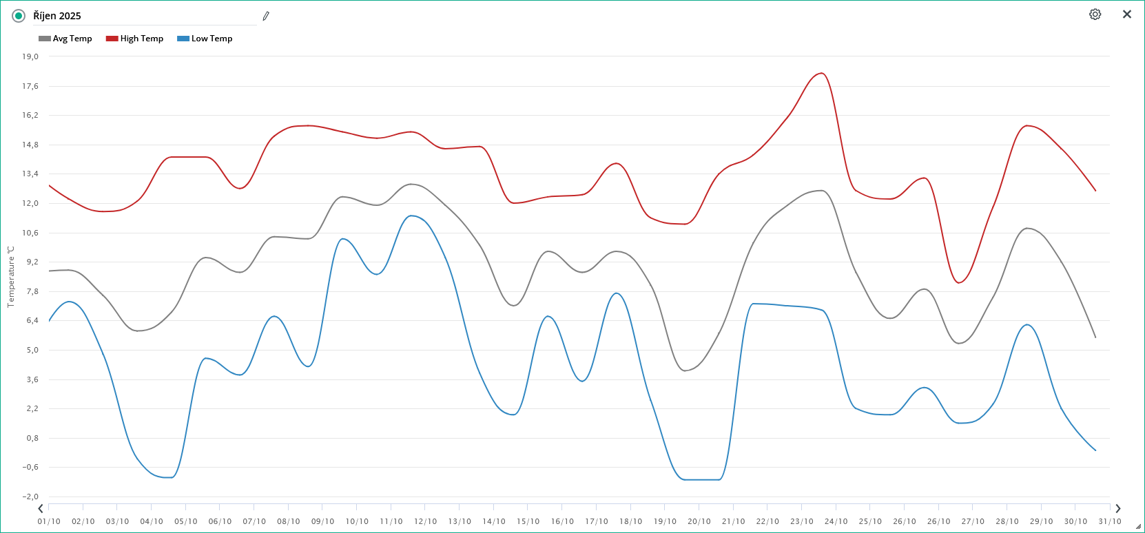 - nejchladnějším dnem byl 19.10. s průměrnou denní teplotou + 1,35°C