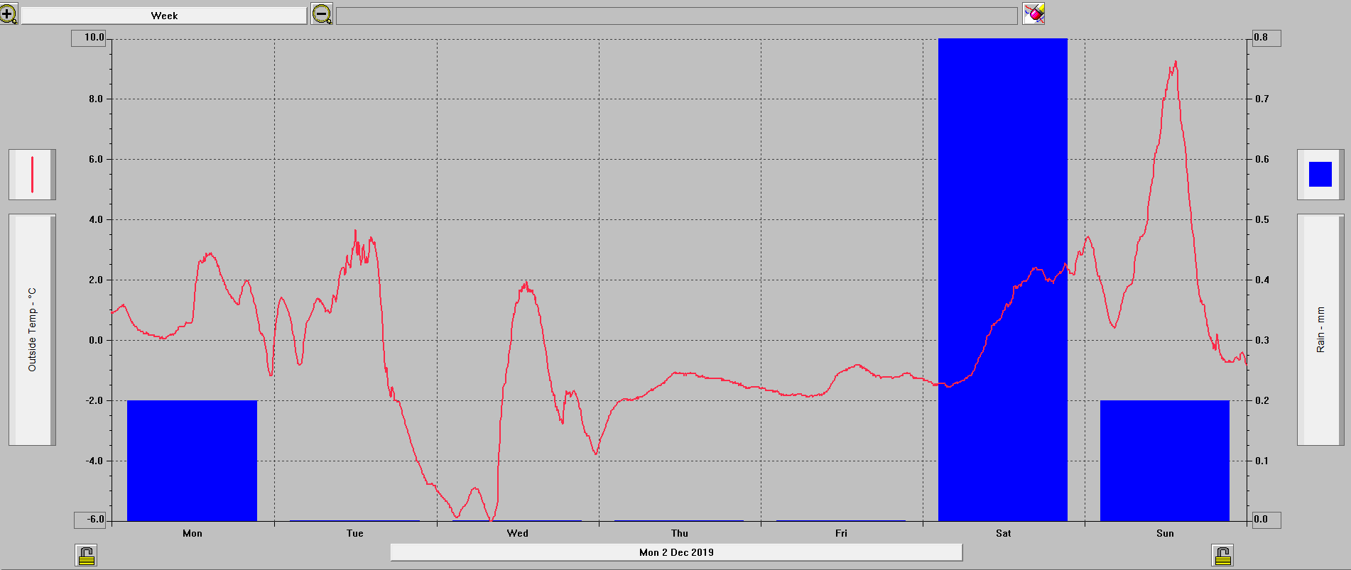 Minimální/ maximální teplota 9.12.: +1,2°C (01:45)/ +4,8°C (12:25)