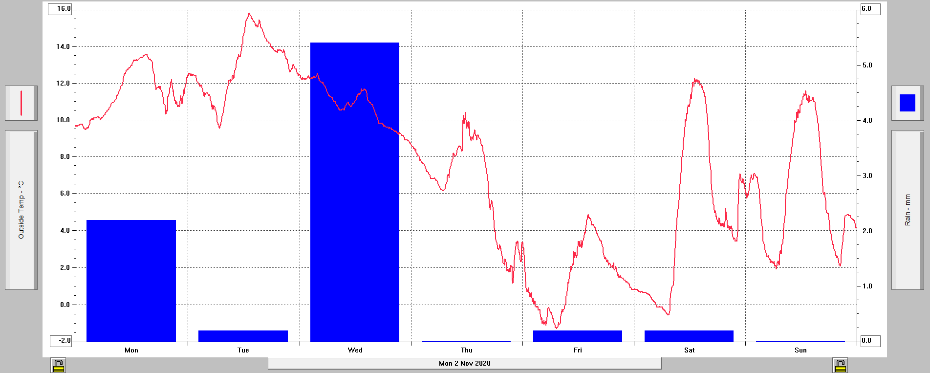 Minimální/ maximální teplota 7.11.: +3,0°C (01:40)/+9,3°C (14:20)