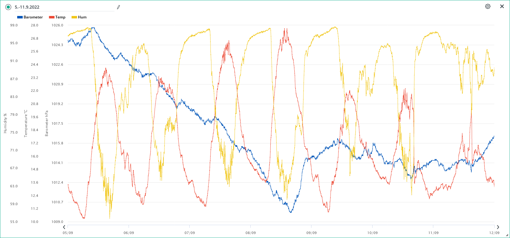 Minimální/maximální tlak 11.9.: 1012,5 hPa / 1016,4 hPa