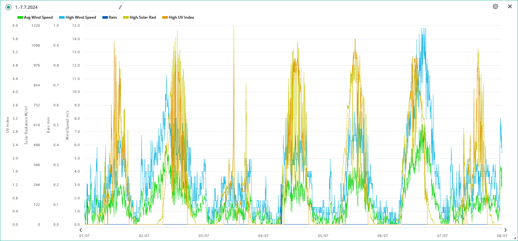 Maximální průměrná rychlost za 24h: 4,4 m/s (7.; 23:20) (357°)