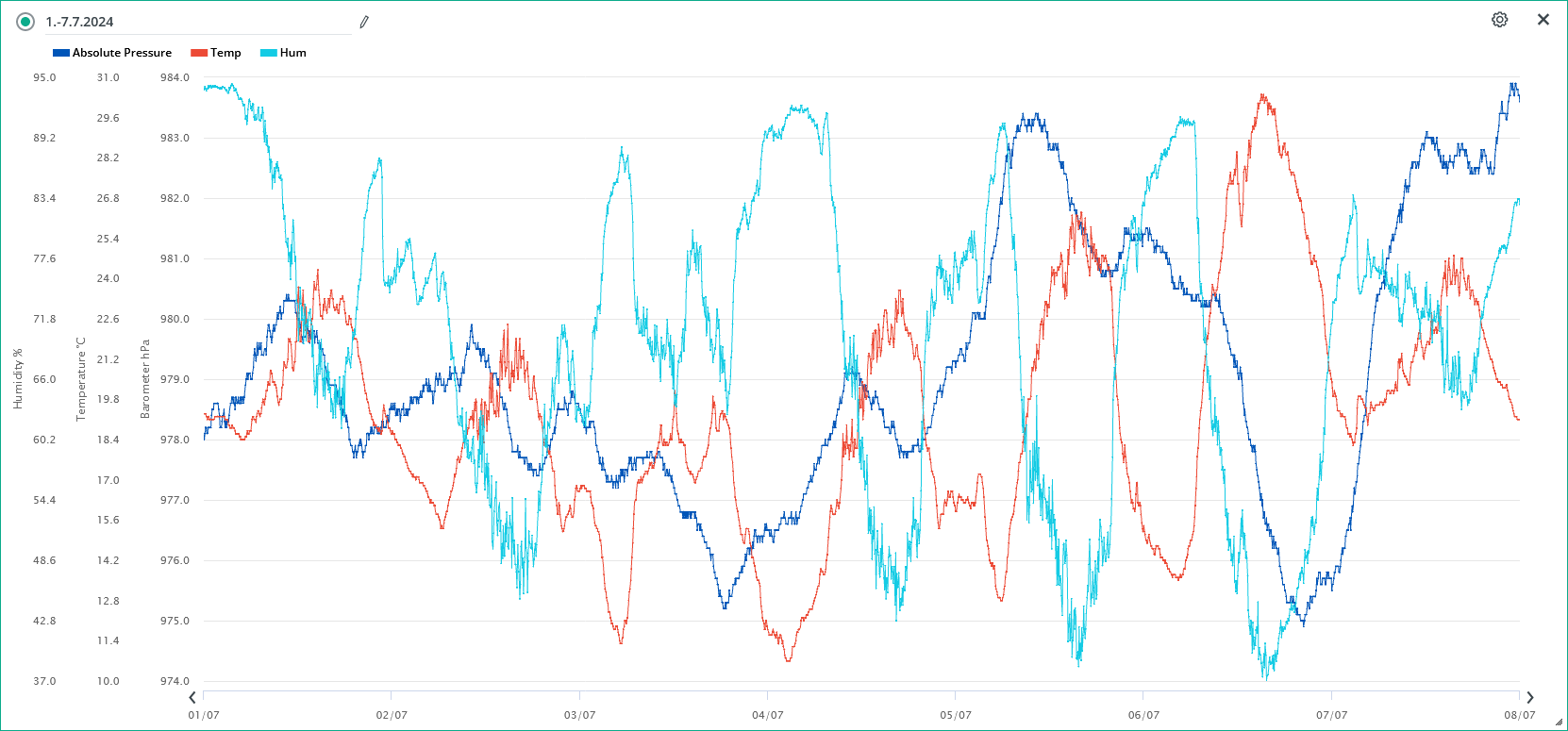 Minimální/ maximální teplota 7.7.: +16,2°C (23:55)/ +22,0°C (15:05)