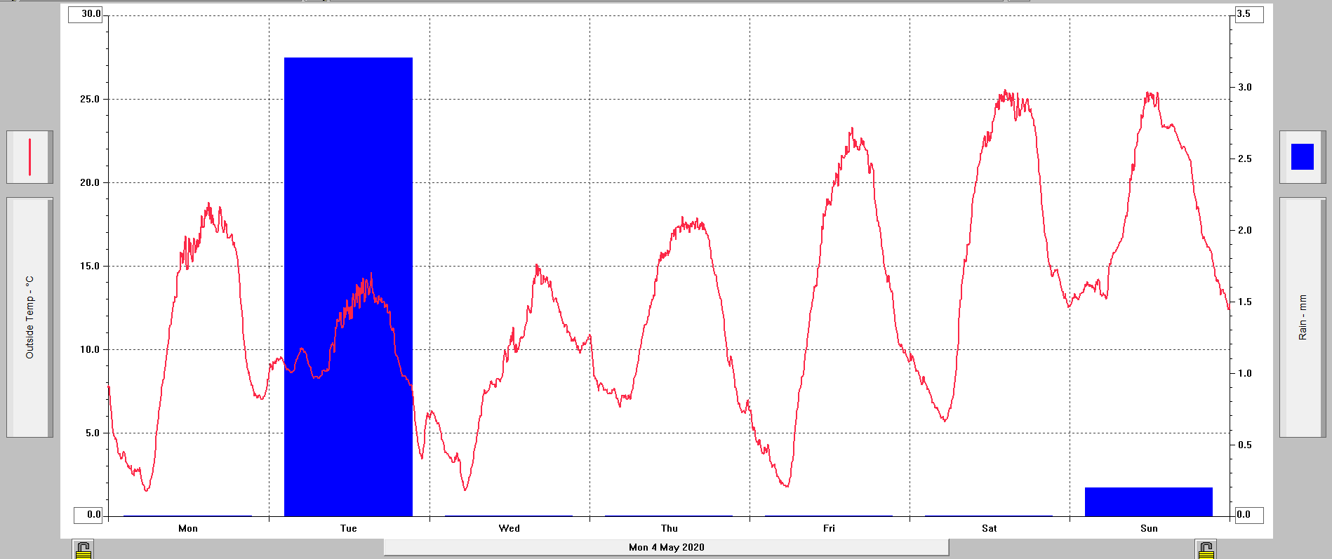 Minimální/ maximální teplota 11.5.: +3,7°C (23:55)/ +20,6°C (12:20)
