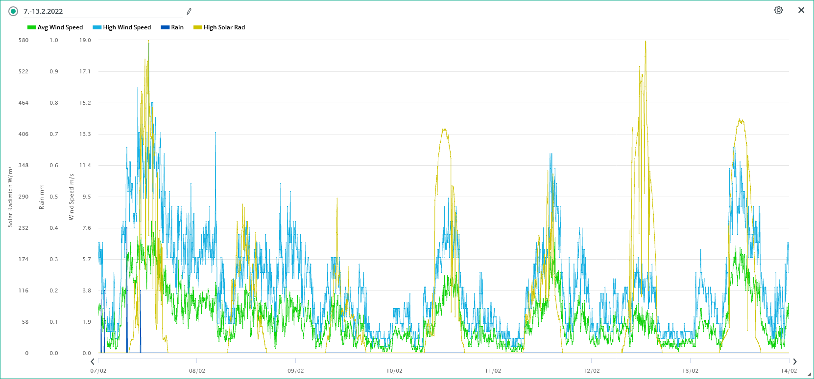 Minimální/ maximální teplota 15.2.: -0,7°C (02:35)/ +7,0°C (14:30)