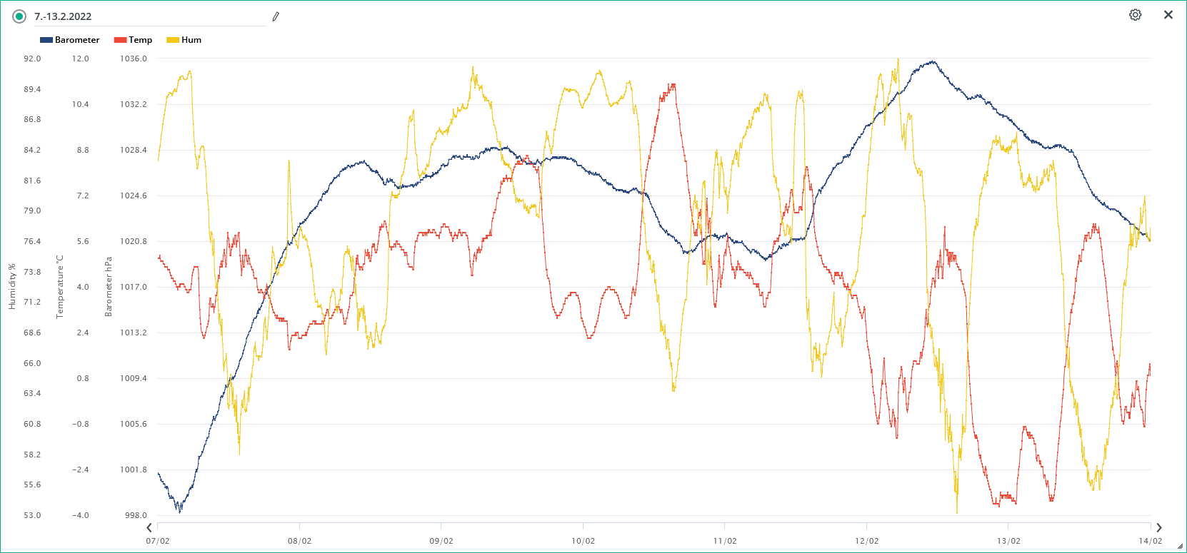 Minimální/maximální tlak 13.2.: 1019,9 hPa / 1029,9 hPa
