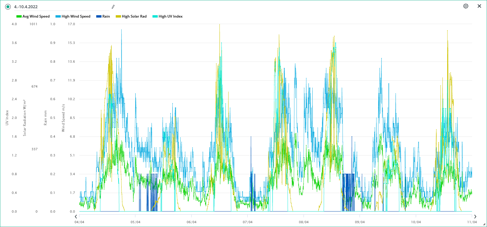 Minimální/maximální tlak 10.4.: 1011,4 hPa / 1019,7 hPa