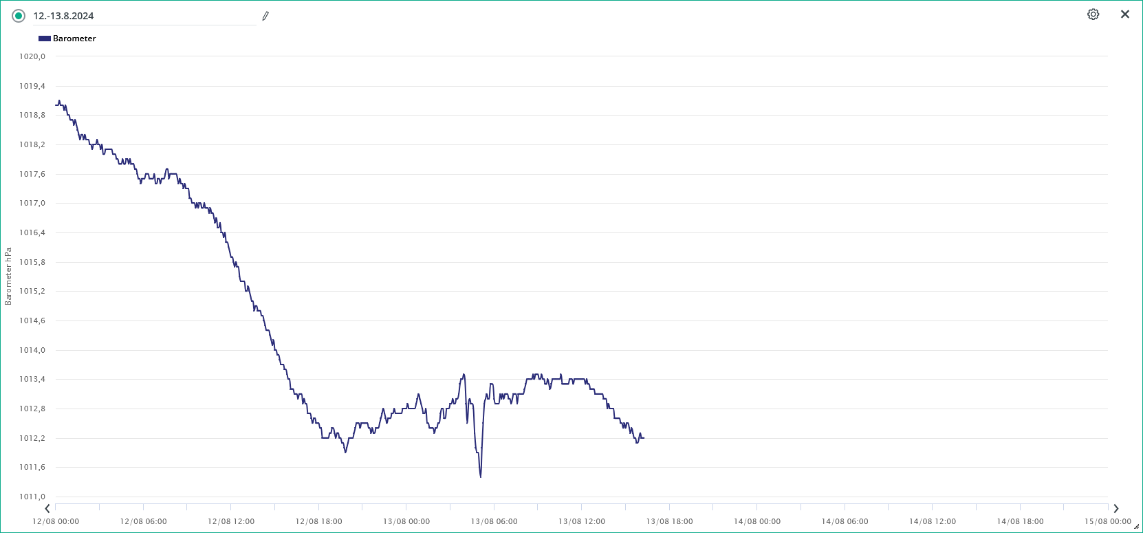 Minimální/maximální tlak 12.8.: 1013,2 hPa /1019,8 hPa