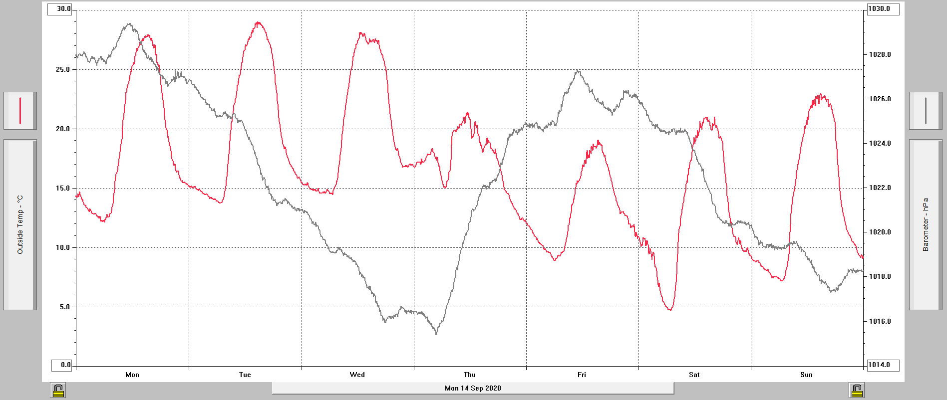 Minimální/maximální tlak 19.9.: 1021,3 hPa / 1027,9 hPa