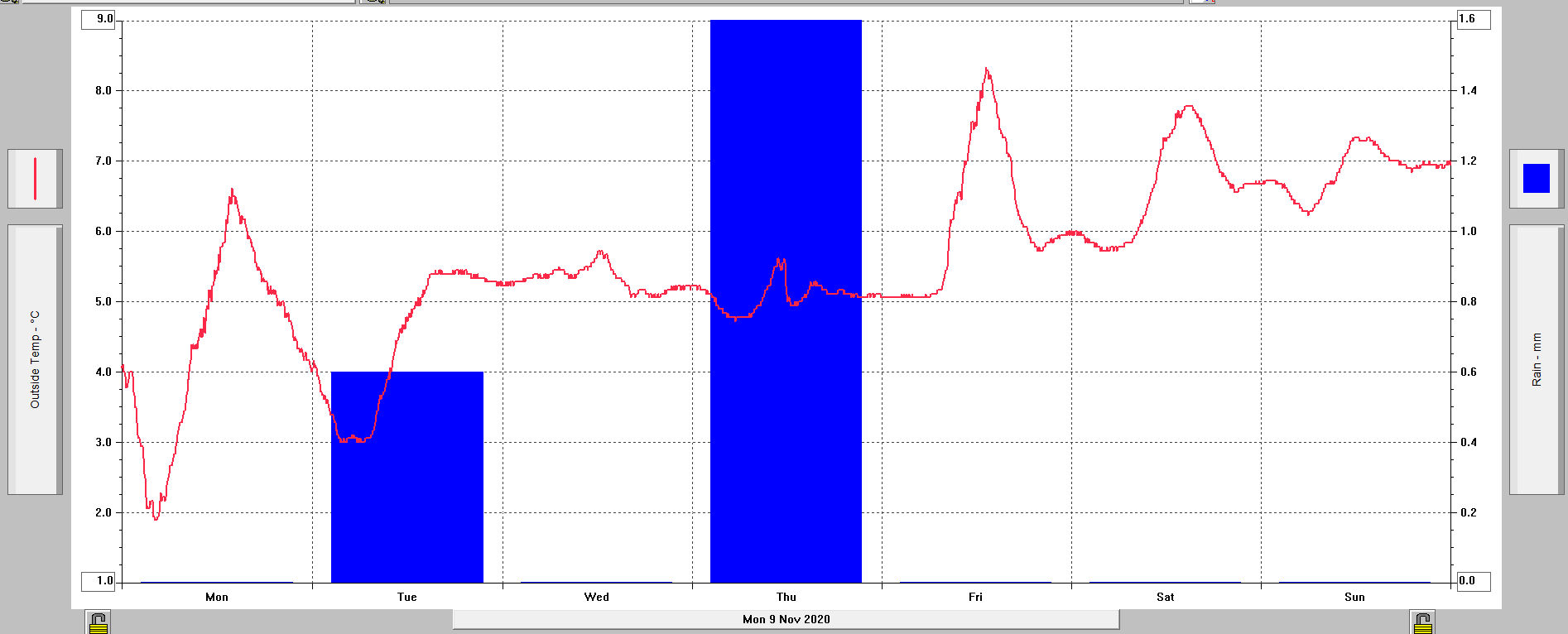 Max THSW za 24h: 7,1 °C (16.; 14:00)