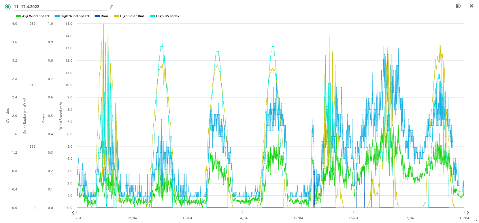 Průměrná rychlost větru 15.4./ max. rychlost.:2,3 m/s (SZ)/ 10,3 m/s (ZSZ) 15:15