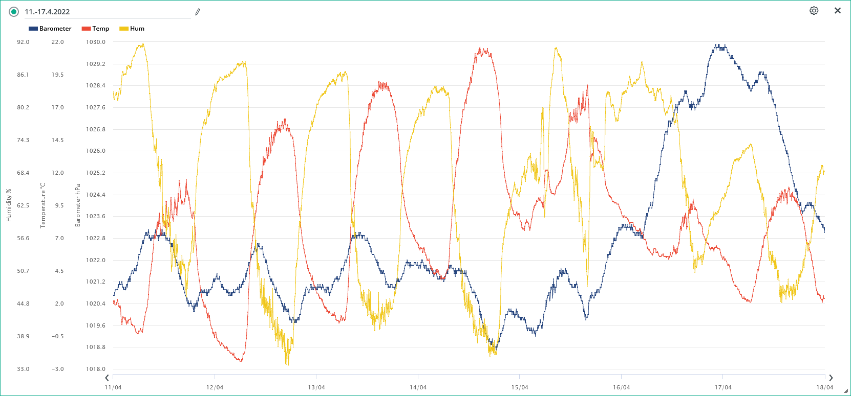 Minimální/maximální tlak 15.4.: 1017,6 hPa / 1020,0 hPa