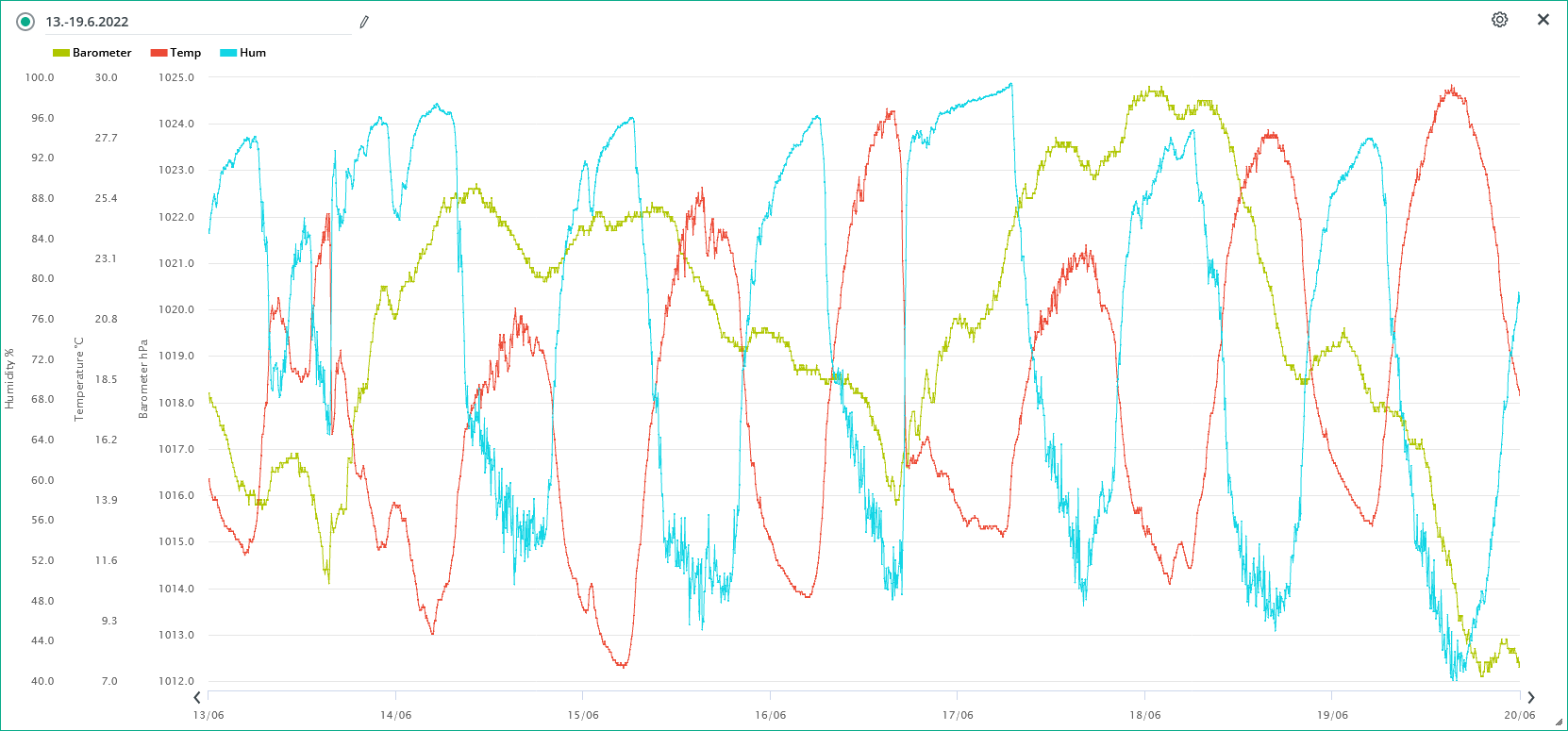 Minimální/ maximální teplota 20.6.: +13,3°C (23:55)/ +28,2°C (11:55)