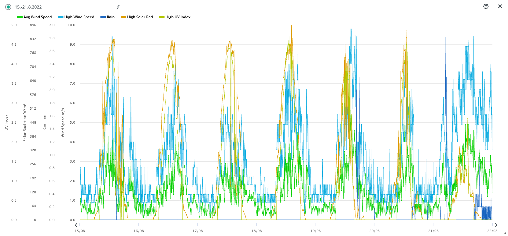 Průměrná rychlost větru 21.8./ max. rychlost.: 3,7 m/s (SZ)/ 11,6 m/s (ZSZ) 15:30