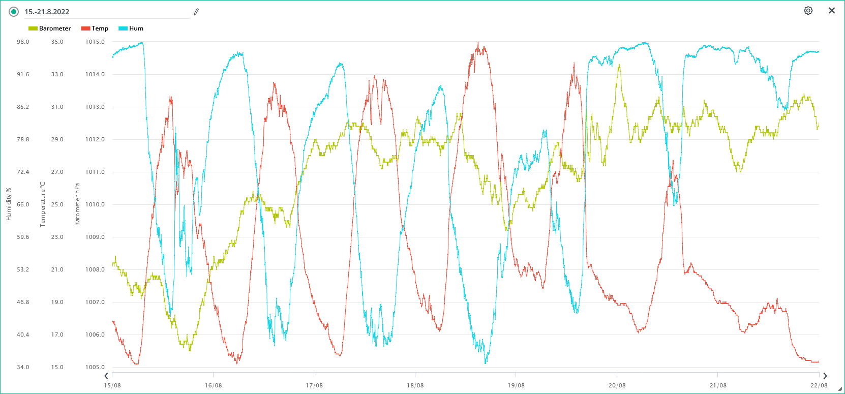 Minimální/maximální tlak 21.8.: 1010,1 hPa / 1013,6 hPa