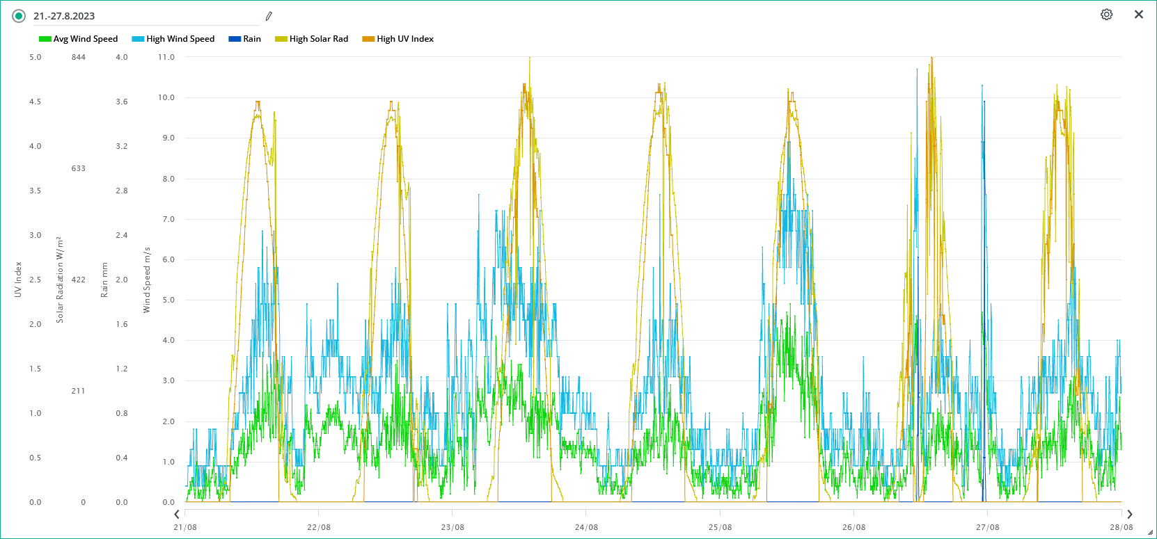 Nejvyšší hodnota solární radiace dnes: 791 W/m2 (12:25)