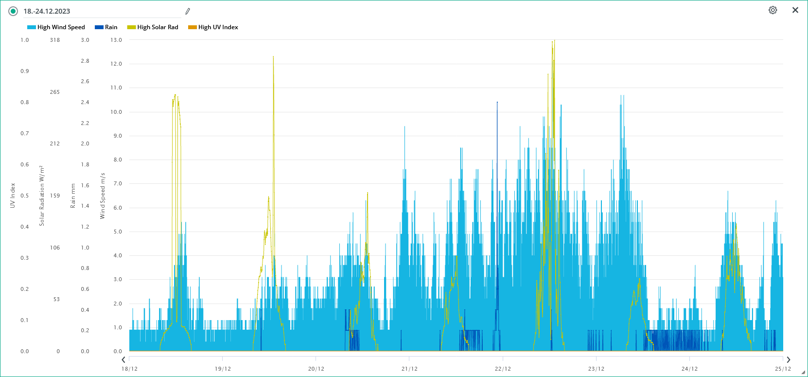 Max THSW index za 24h: 10,1 °C (25.; 13:10)