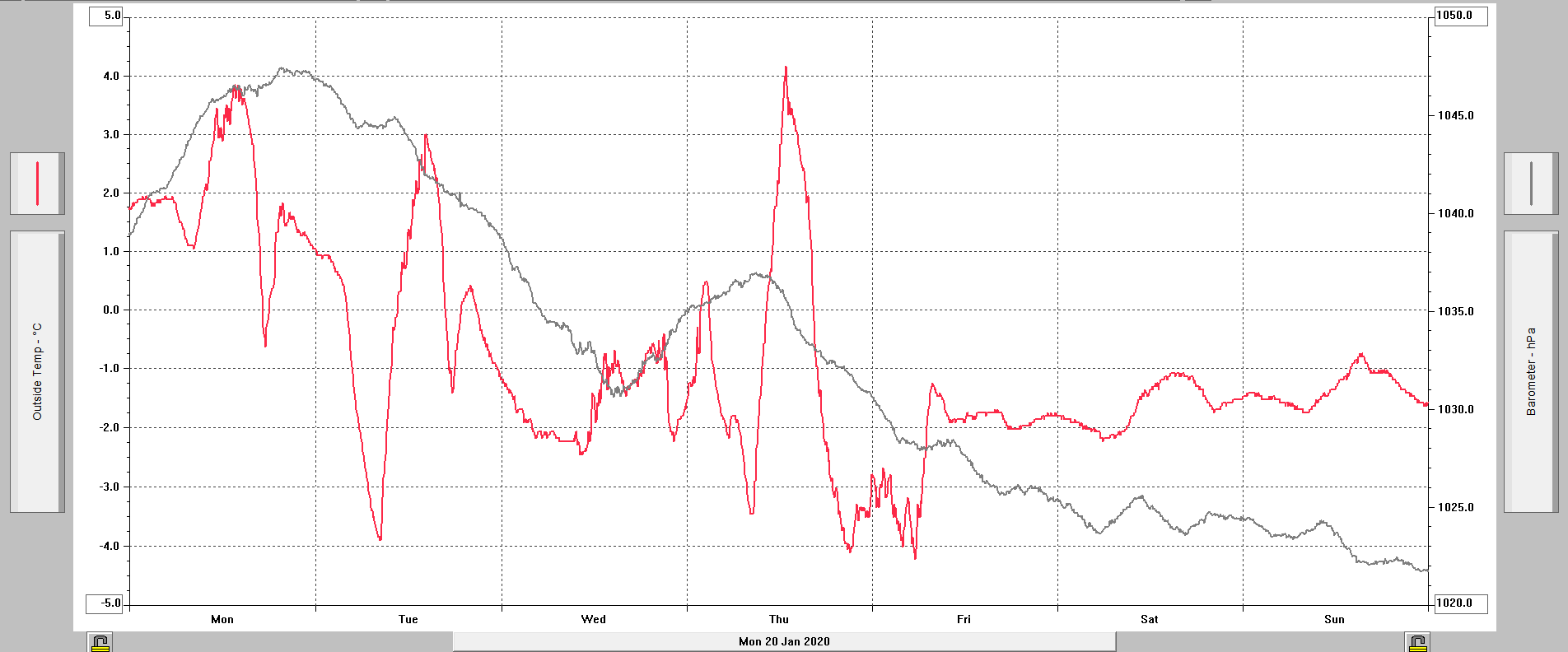 Minimální/maximální tlak 24.1.: 1025,4 hPa /1030,2 hPa