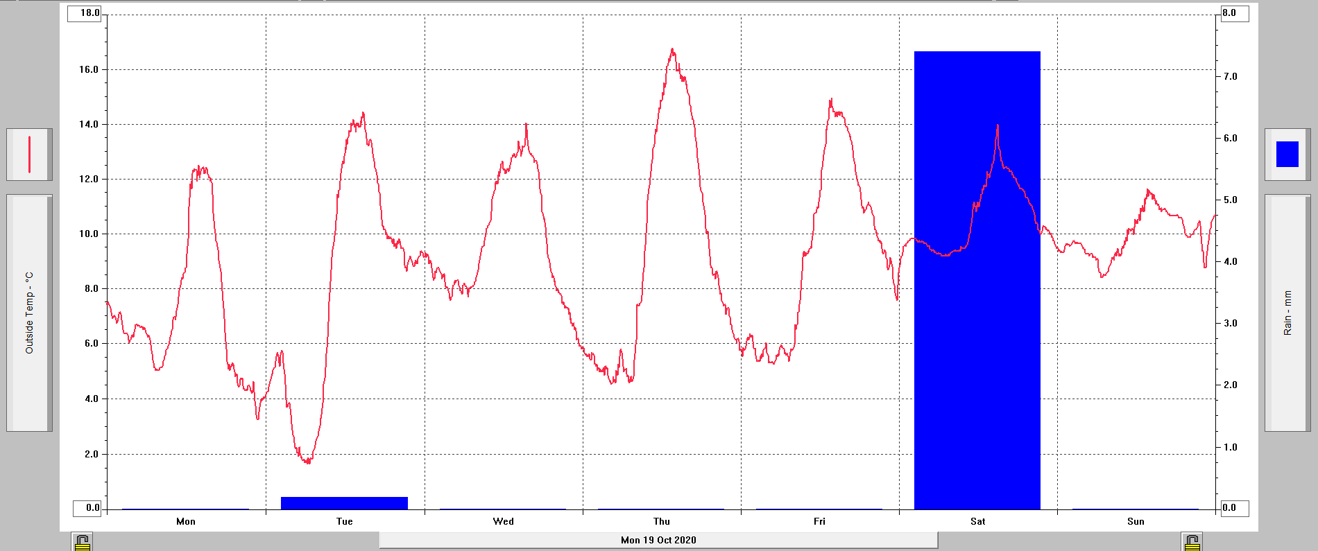 Minimální/ maximální teplota 26.10.: +8,6°C (00:10)/+11,6°C (18:20)