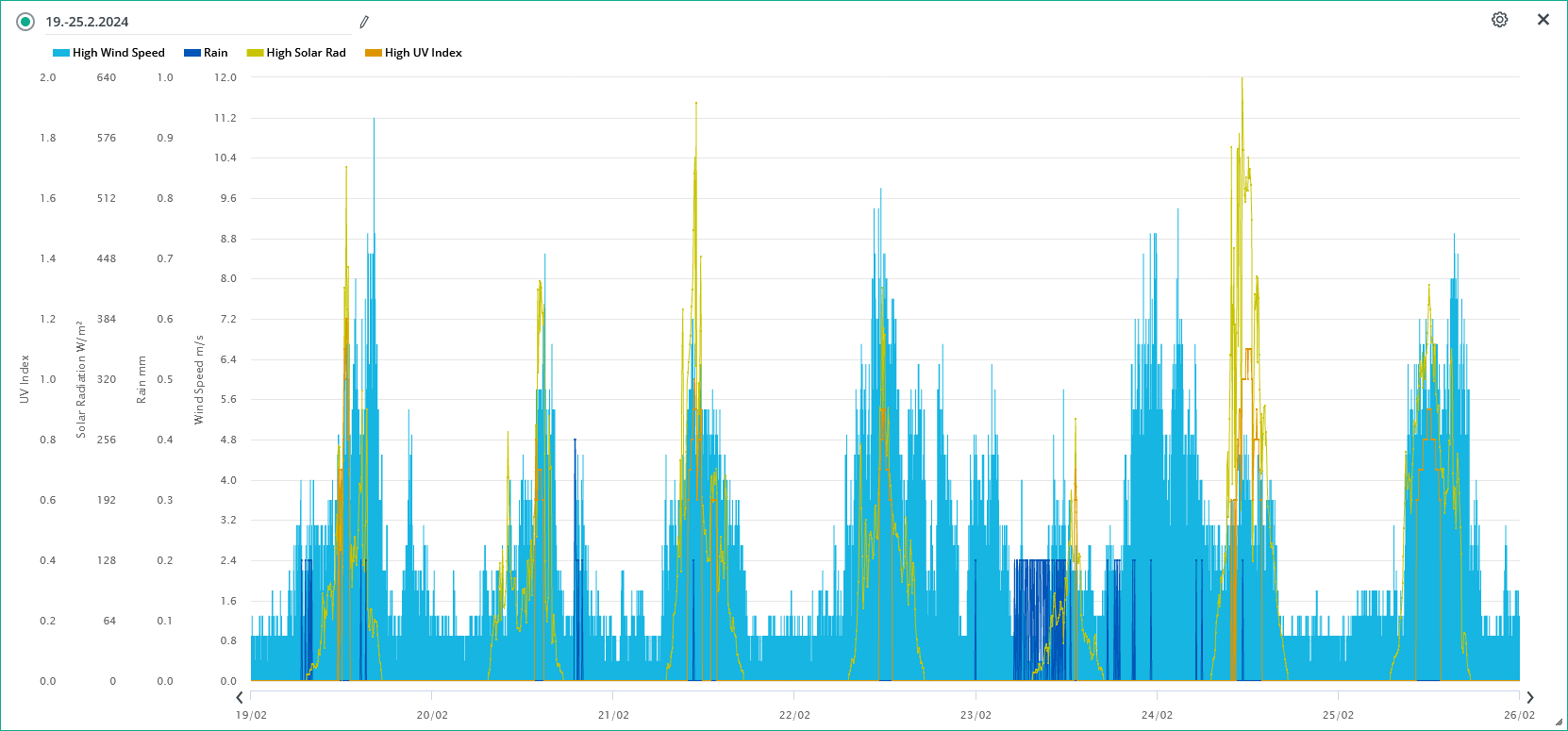 Nejvyšší hodnota solární radiace dnes: 528W/m2 (11:55)