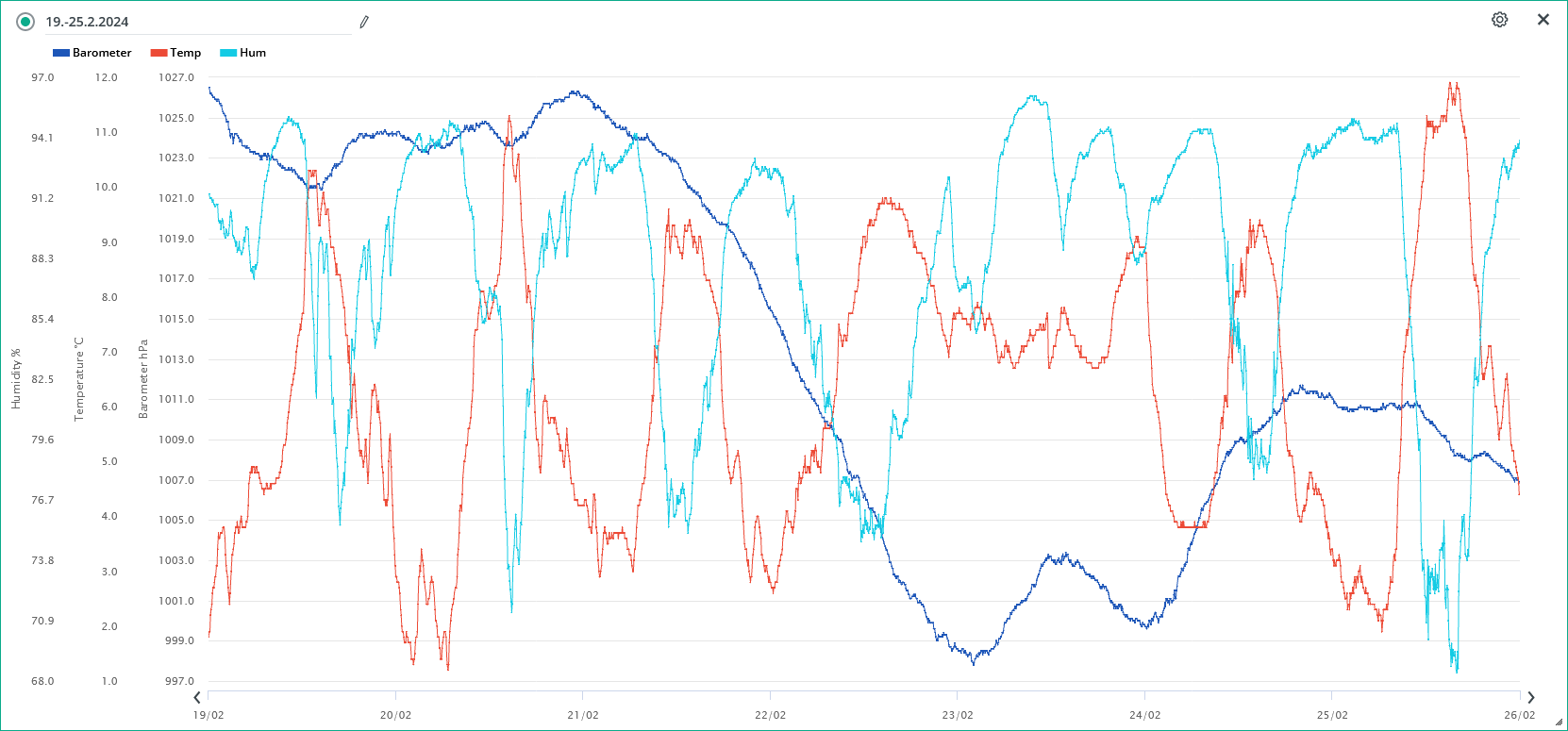 Minimální/ maximální teplota 23.2.: +4,5°C (02:45)/ +6,6°C (09:50)