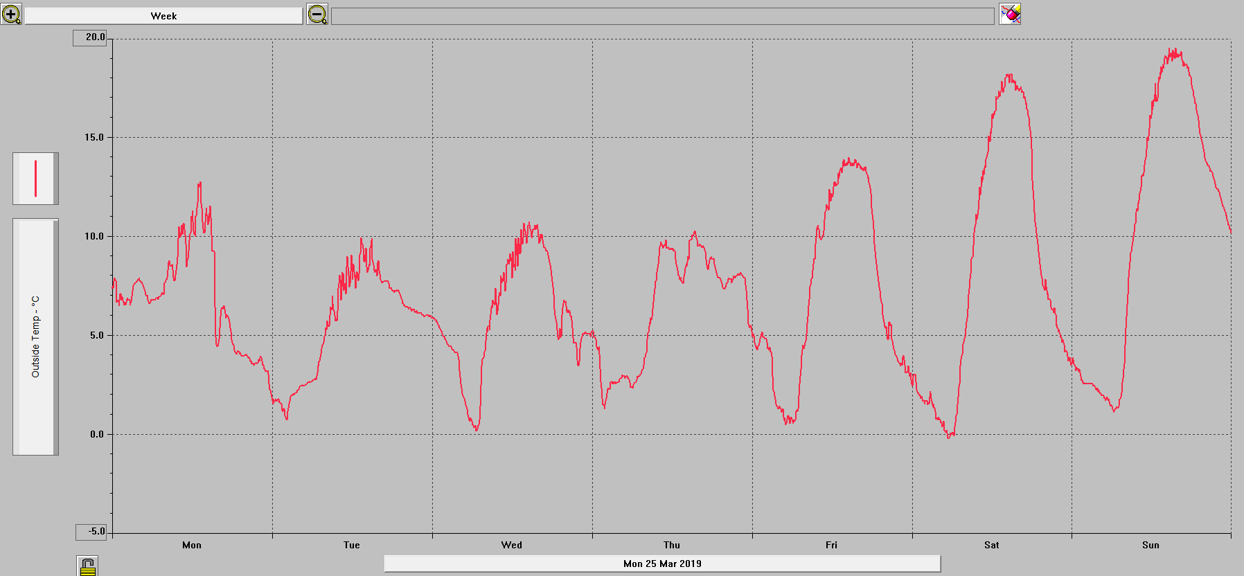 Minimální/ maximální teplota za 24h: 4,2 °C (1.; 06:54)/ 18,8 °C (31.3.; 16:55)
