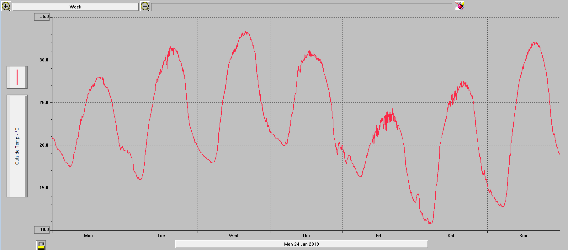 Max THSW za 24h: 33,5 °C (2.; 16:20)