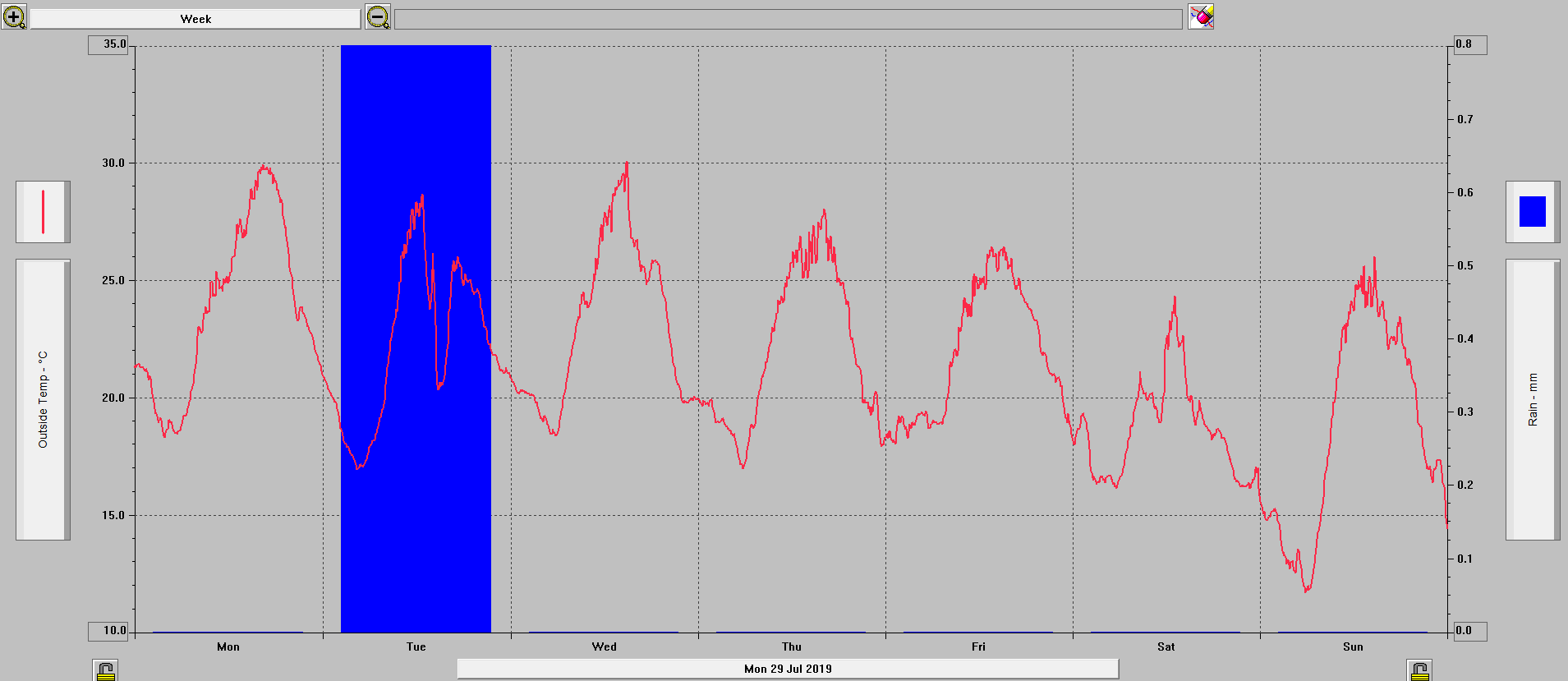 Minimální/ maximální teplota 31.7: +17,5°C (23:55)/ +28,7°C (14:25)