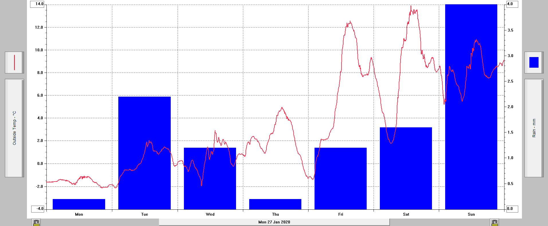 Minimální/ maximální teplota 1.2.: +5,1°C (05:15)/ +12,2°C (11:55)