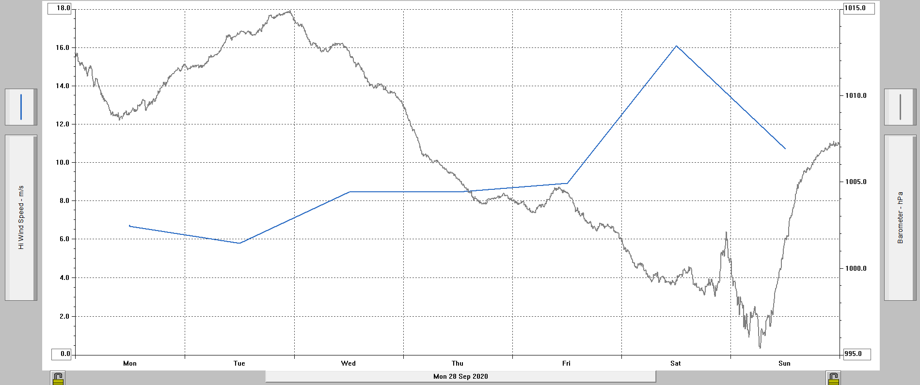 Minimální/maximální tlak 30.9.: 1010,6 hPa / 1015,3 hPa