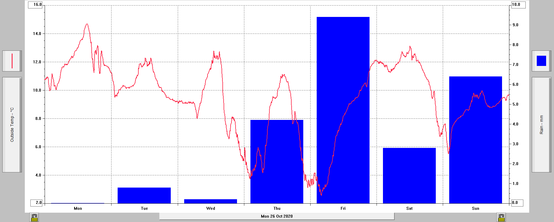 Minimální/ maximální teplota 2.11.: +8,3°C (00:15)/+14,6°C (15:15)