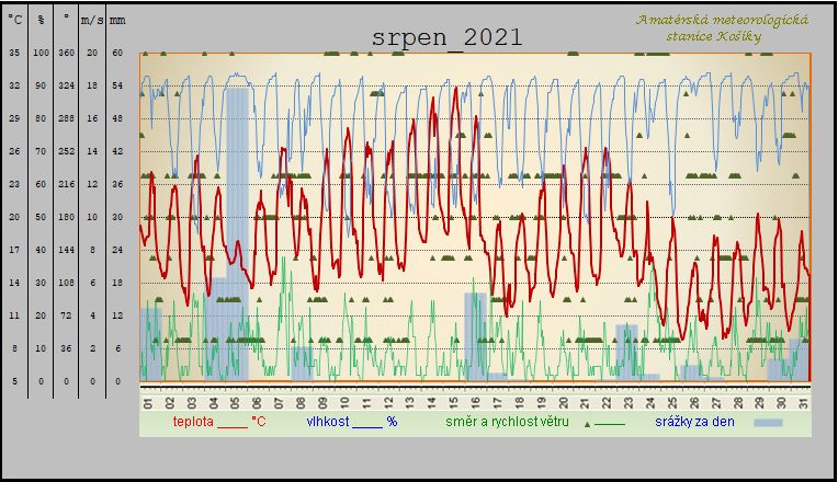 - nejsilnější náraz větru zaznamenán: 11,6 m/s z azimutu 344°(S) dne 24.8. v 6:28 SELČ