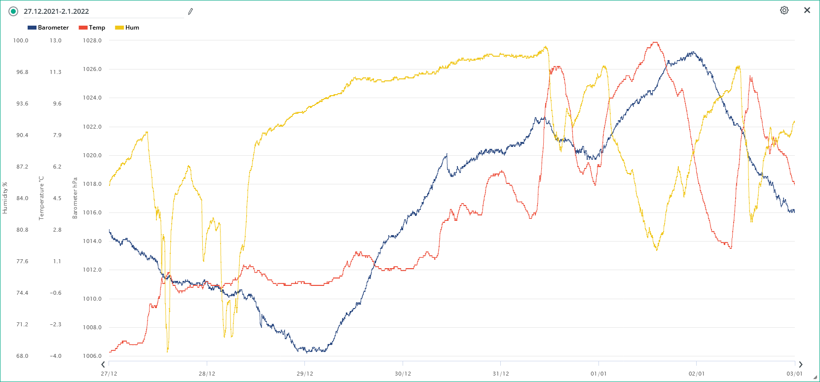 Minimální tlak za 24h: 1019,6 hPa (31.12.; 21:15)