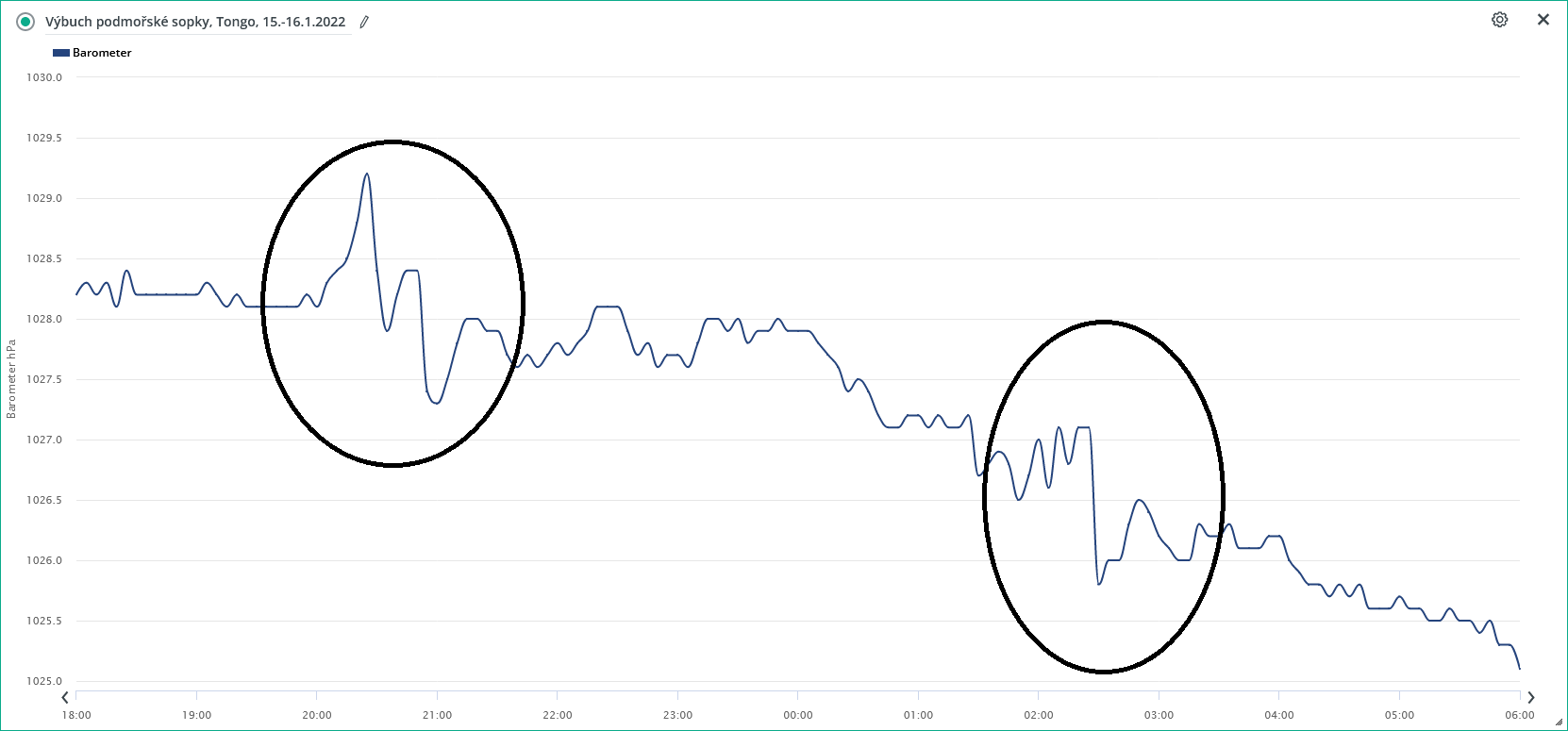 První měsíc nového roku se jevil teplejší než činí dlouhodobý průměr pro leden. Odchylka od normálu 2001-2020 s průměrnou teplotou 0,8 °C dosáhla hodnoty +1,2 °C. Srážek spadlo méně než je obvyklé, celkem srážky pokryly 65 % dlouhodobého průměru 2011-2020. Měsíc leden je obvykle nejsrážkovější měsíc zimy, letos tomu ale tak není. Většina srážek spadla ve formě sněhu, srážky ale byly spíše slabé. Leden byl také poměrně větrný. Převládal vyšší tlak a směry větru od jihozápadu. Zajímavostí byla odezva na tlakové vlny z výbuchu podmořské sopky u Tongy v Tichém oceánu 15. a 16.1., viz přiložený graf.
