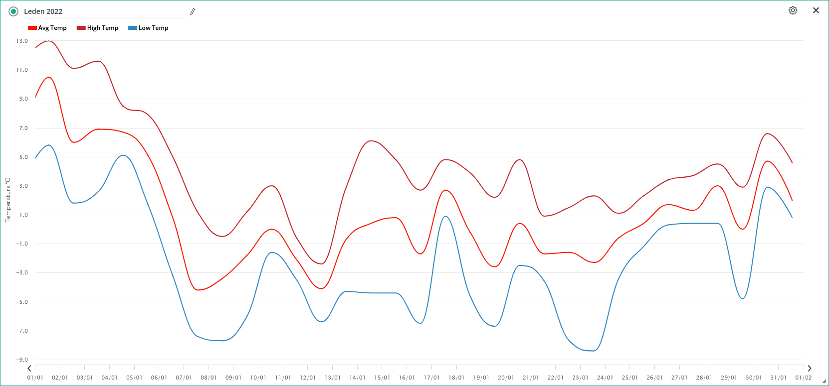 Absolutní teplotní maximum dne »»»»»»» 1.1 »»»»»»» 13,2°C